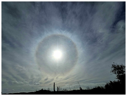 'Hello James, I took this shot of a sun halo while standing on the shore of Lake Wanaka at Glendhu Bay campground. Taken facing North, at 12:47 Monday 6 April 2026 on my Samsung S24 Ultra phone.'