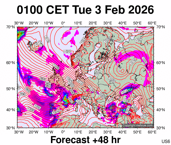 Forecasts issued at:- 0100 CET Sun 1 Feb 2026 (0000 GMT Sun 1 Feb 2026)