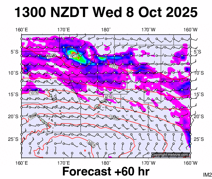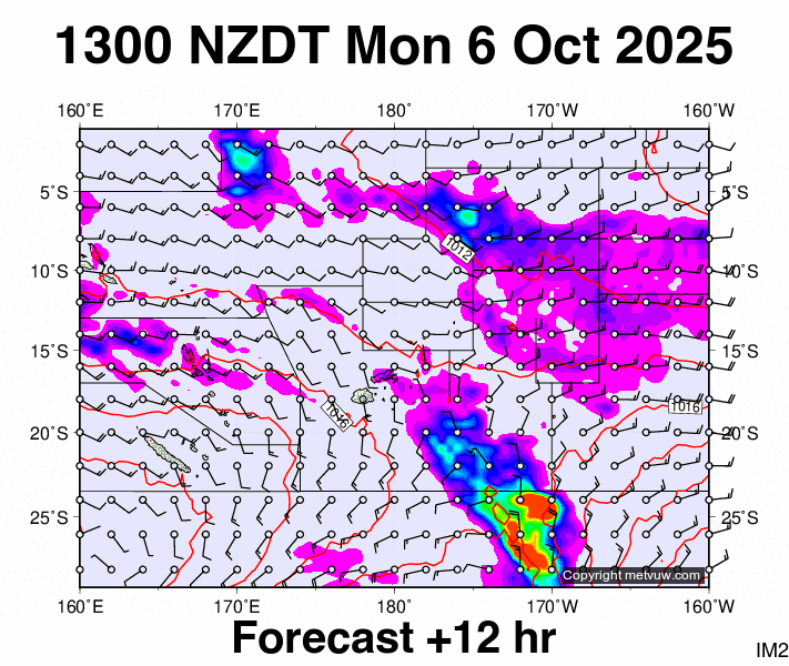 Forecasts issued at:- 0100 NZDT Mon 6 Oct 2025 (1200 GMT Sun 5 Oct 2025)