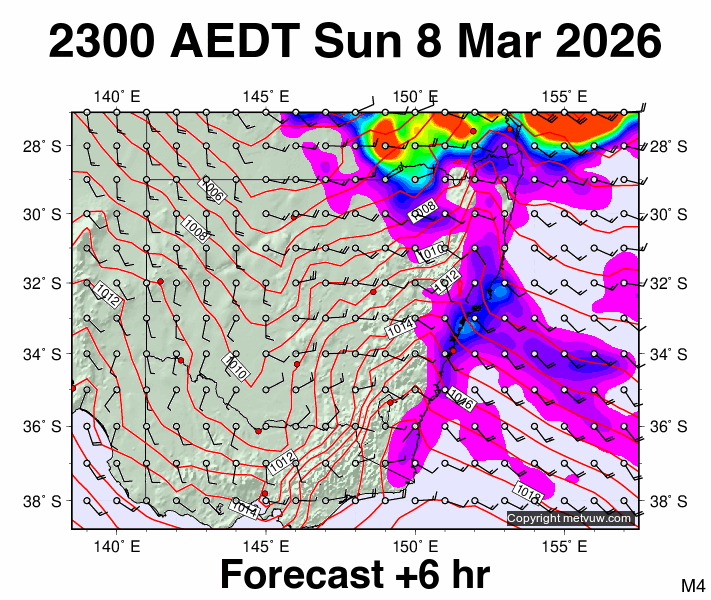 Forecasts issued at:- 1700 AEDT Sun 8 Mar 2026 (0600 GMT Sun 8 Mar 2026)