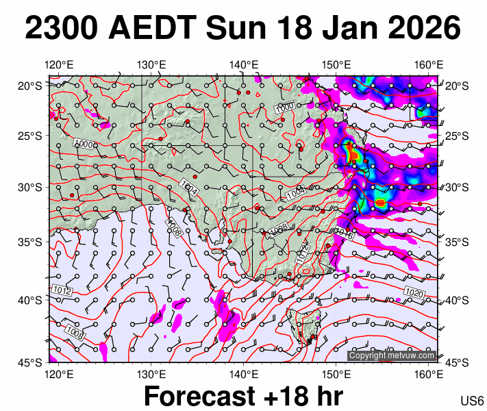 Forecasts issued at:- 0500 AEDT Sun 18 Jan 2026 (1800 GMT Sat 17 Jan 2026)