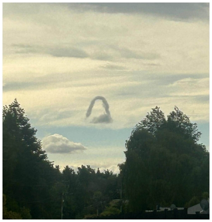 ![]() Photo sent in by Nic Nation on his sister Caileen's behalf. He wrote 'looking west from the western outskirts of Oamaru at the end of a light overcast calm day with a high of 28°C. The horseshoe shaped cloud was visible for around 10-12 minutes. Photo taken 7 December 2025 at 18:00 on an iPhone 14.' Photo of the Day - Monday 15 December 2025