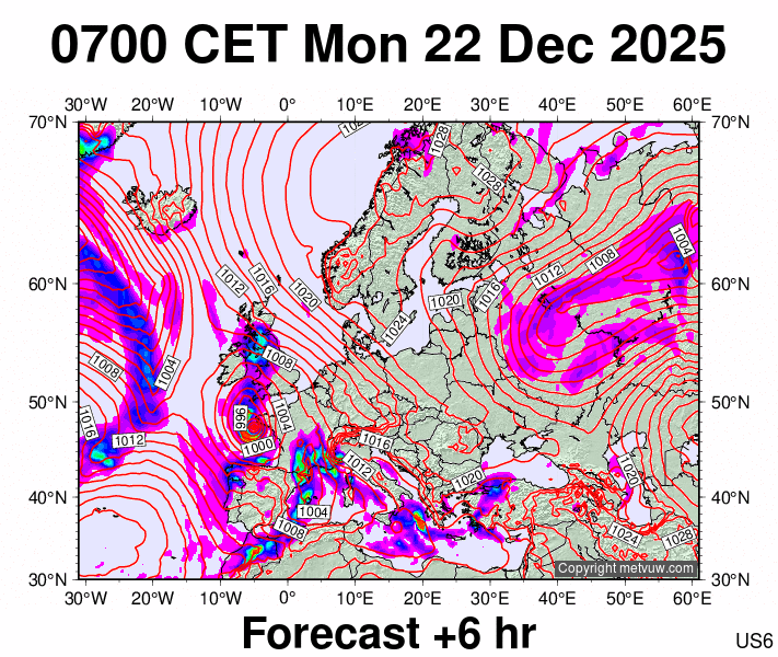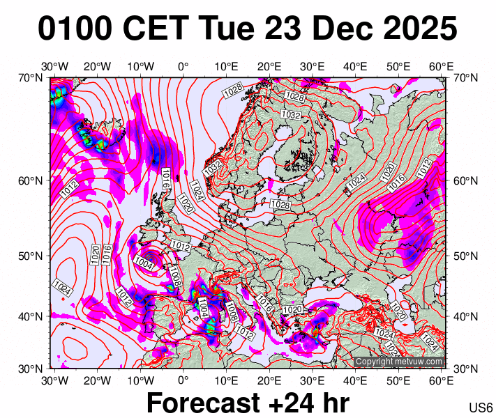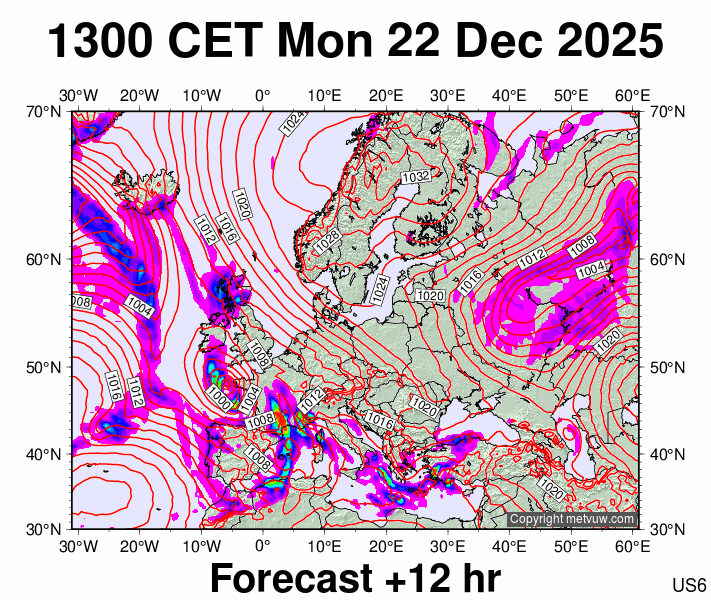 Forecasts issued at:- 0100 CET Mon 22 Dec 2025 (0000 GMT Mon 22 Dec 2025)