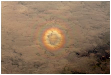 ![]() Bob wrote 'a bullseye rainbow seen just after take off from Melbourne airport at 14:24 on 22 July 2018. Canon EOS 500D 1/250 sec. f/11 55 mm ISO 100. This is known as a 'glory' and is often seen around the shadow of an aircraft under the right atmospheric conditions. (JMcG) Photo of the Day - Saturday 10 November 2018