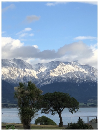 'Seaward Kaikoura range from Kaikoura waterfront wearing a cloak of snow from yesterday's southerly storm. Taken 07:35 29 October 2025 on an iPhone 10' wrote Charles.